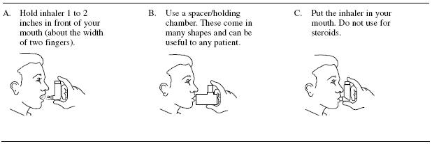These directions explain how to use metered-dose inhalers. If you are using a different type of inhaler such as a dry powder inhaler or breath-activated inhaler (a type of inhaler that releases the medication automatically when you breath in), you will need to follow different directions. Ask your doctor or pharmacist if you need more information or if you do not know what type of inhaler you are using.