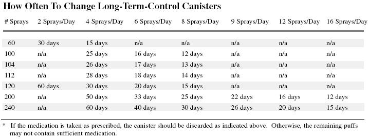 5. You should note the date that you begin using the canister and count ahead by the number of days you expect the canister to last. This will give you the date that you can expect your canister to be empty. For example, if you started using the new canister on May 1st, and the canister contains enough medication for 25 days, it should last until May 26th. Plan to refill your prescription before this date so that you will not run out of medication.